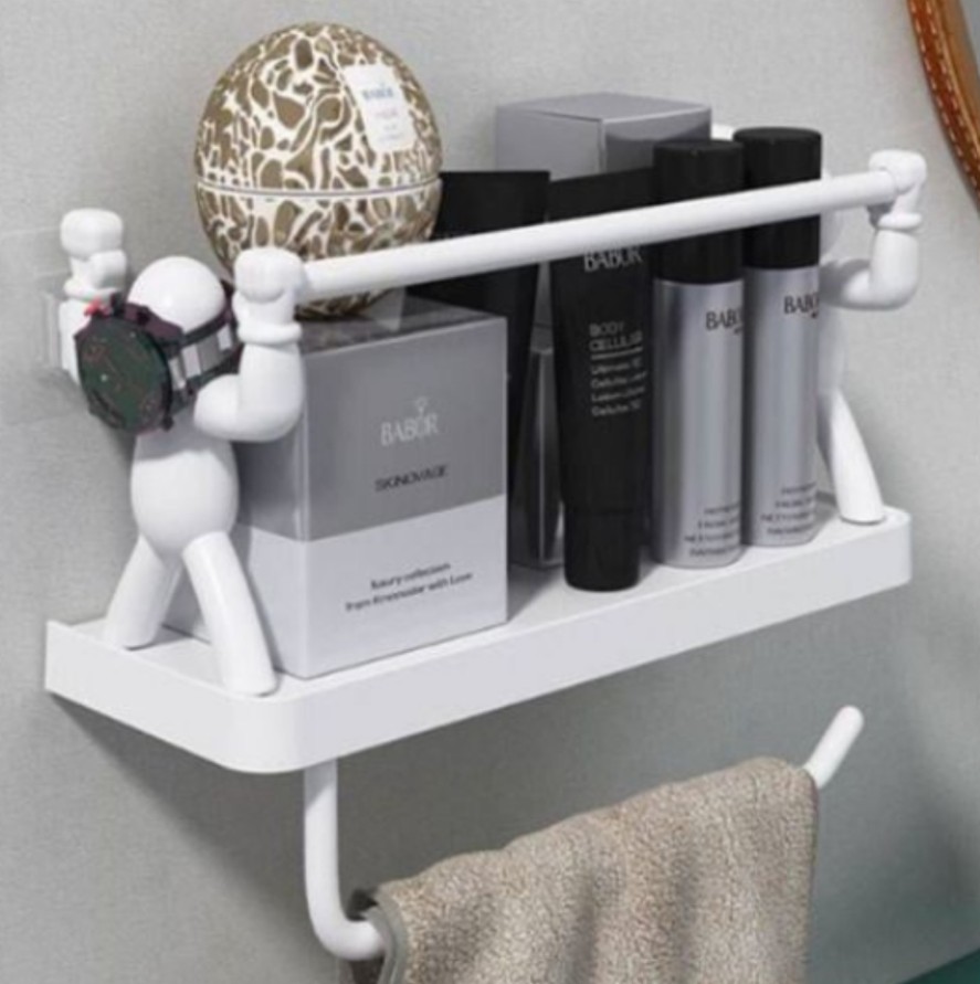 Dale un toque divertido y funcional a tu baño o cocina con nuestra Repisa Flotante con Gancho para Toalla. Este estante no solo te ayuda a organizar tus productos de cuidado personal o de cocina, sino que también añade un detalle decorativo único gracias a su diseño con figuras que sostienen la barra.